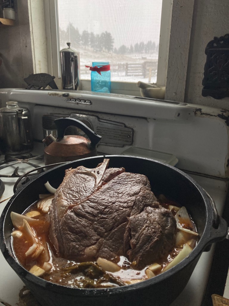 A chuck roast slowly simmering in a cast iron pot fills our home with the warm scent of hearty meal to come. Paired with some mashed potatoes and home-made sourdough bread = solid comfort.