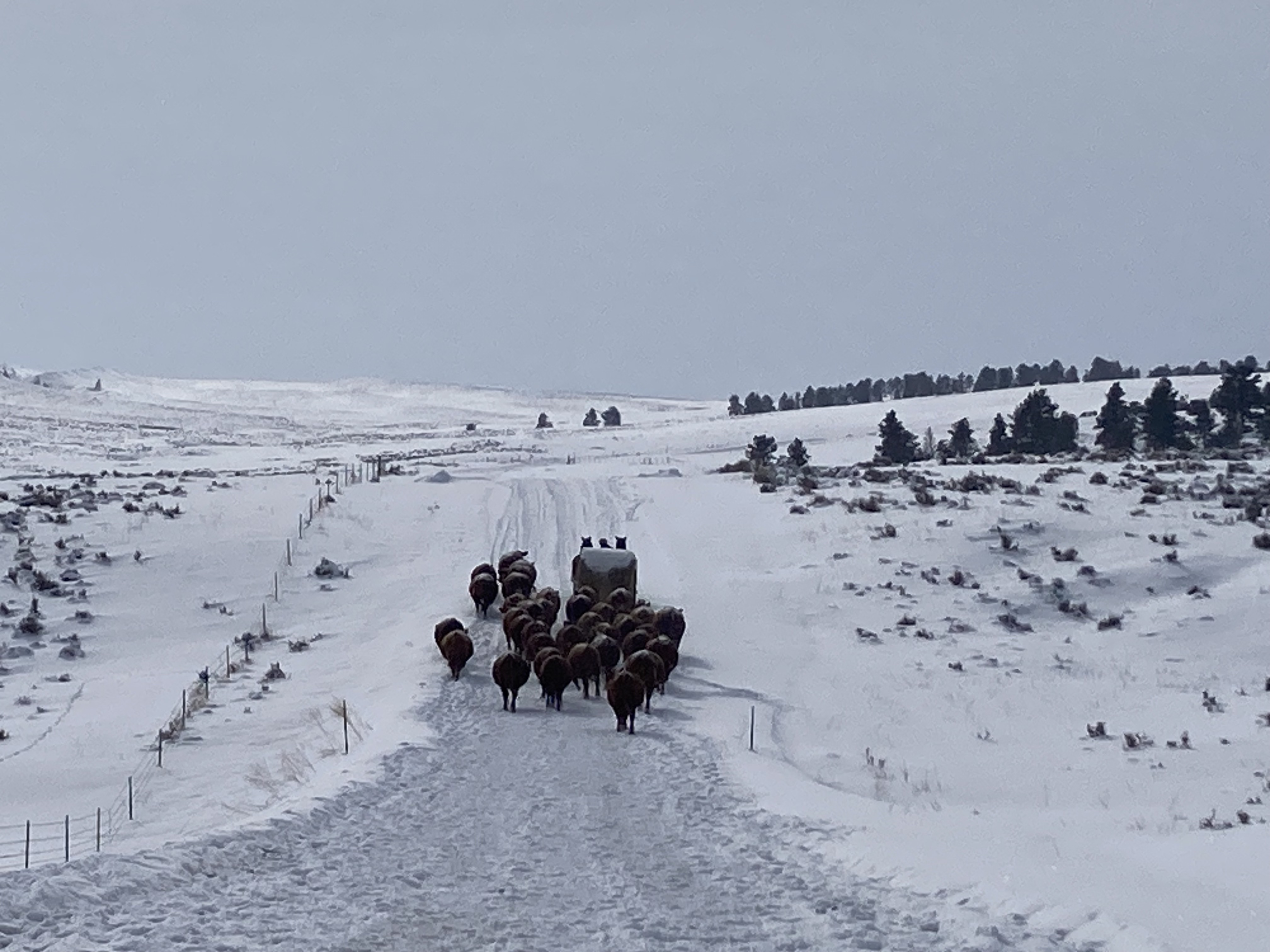 In the last week of February, we trailed the cows down to the pasture by our barn in anticipation of calving to start in March. They eagerly followed the bale of hay that Jack and Jill helped Bart haul down the county road. Maverick and I followed along in case anyone got out of line. Much to Maverick’s disappointment, the cows stayed focused on the trail ahead and didn’t dare wander into the deep snow off the road.