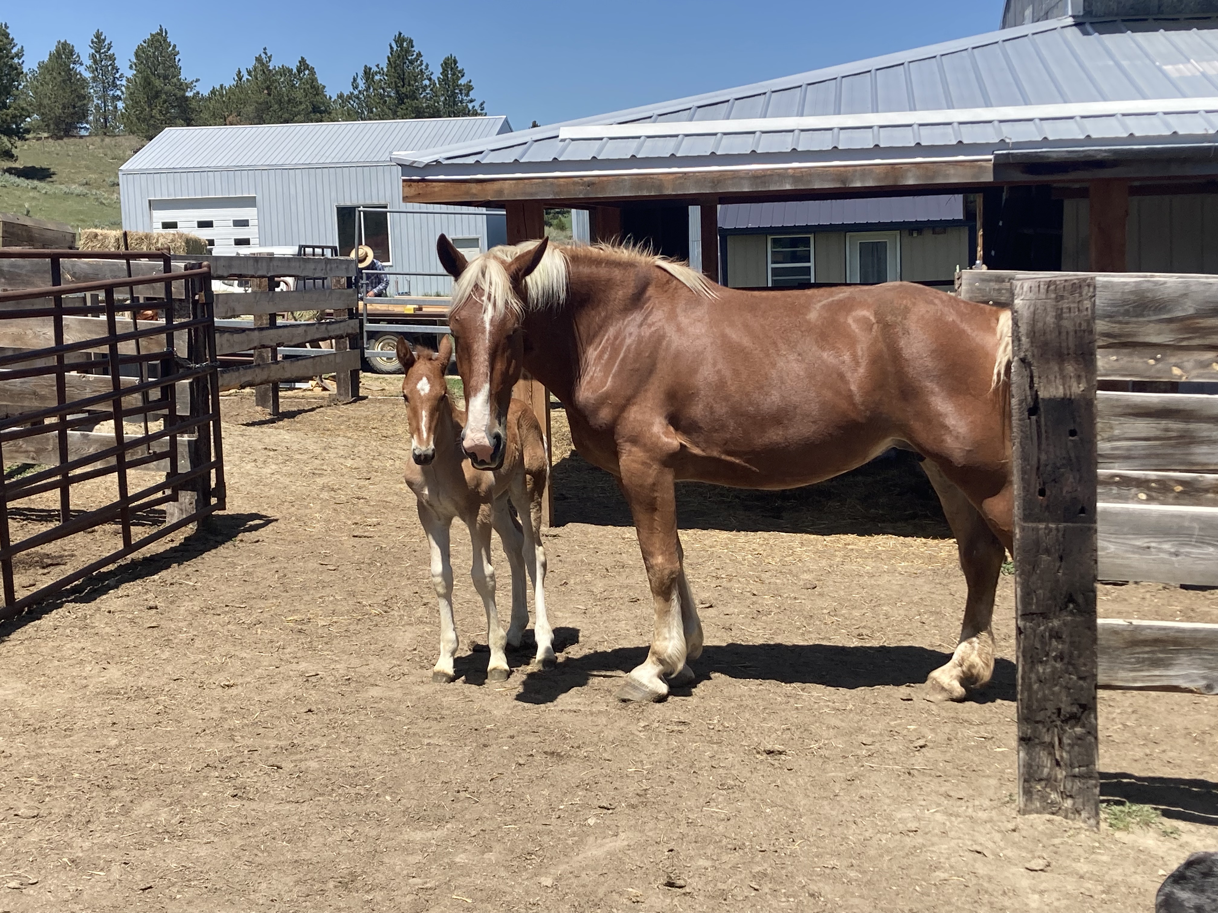 Our new mare, Indie, and her foal arrived in May from the midwest. Indie is a four-year-old Belgian that has helped mow a few acres in the past, but is still a little bit green. She’ll be paired with Beth after their foals are old enough to spend time away from them. We are so lucky to have found another horse to team with Beth, and what a bonus that she came with a healthy two-week old foal, Lily.