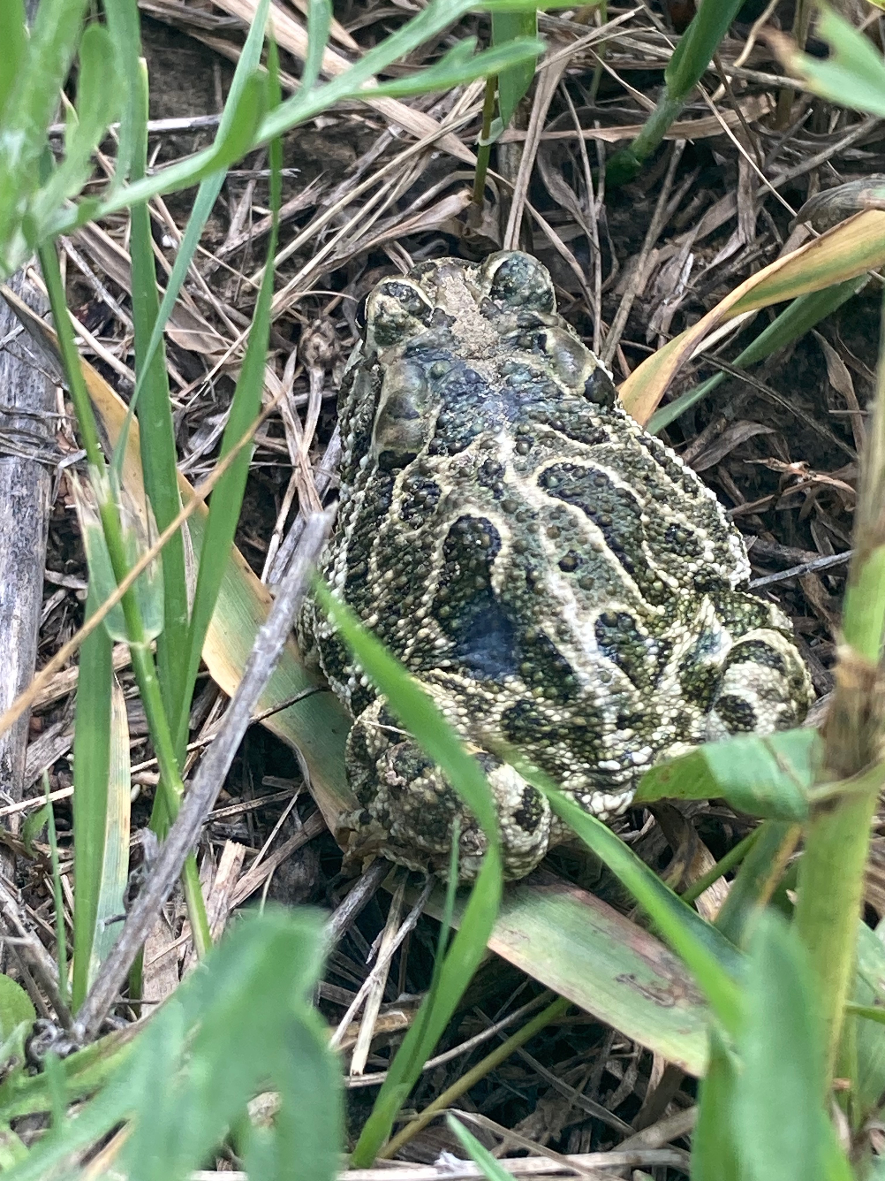 I spy with my little eye a Great Plains Toad! This toad immediately caught my eye with its unique pattern of dark green blotches. We have oodles of Woodhouse’s toads on the patio around our house, but this is the first Great Plains Toad I’ve seen. On summer evenings the Woodhouse’s toads come out from the garden to feast on insects and keep us entertained. Their unusual nasally screeching mating call punctuates the prairie air at dusk – if you haven’t heard it before, I highly suggest you check it out. Oh, the marvels of nature!