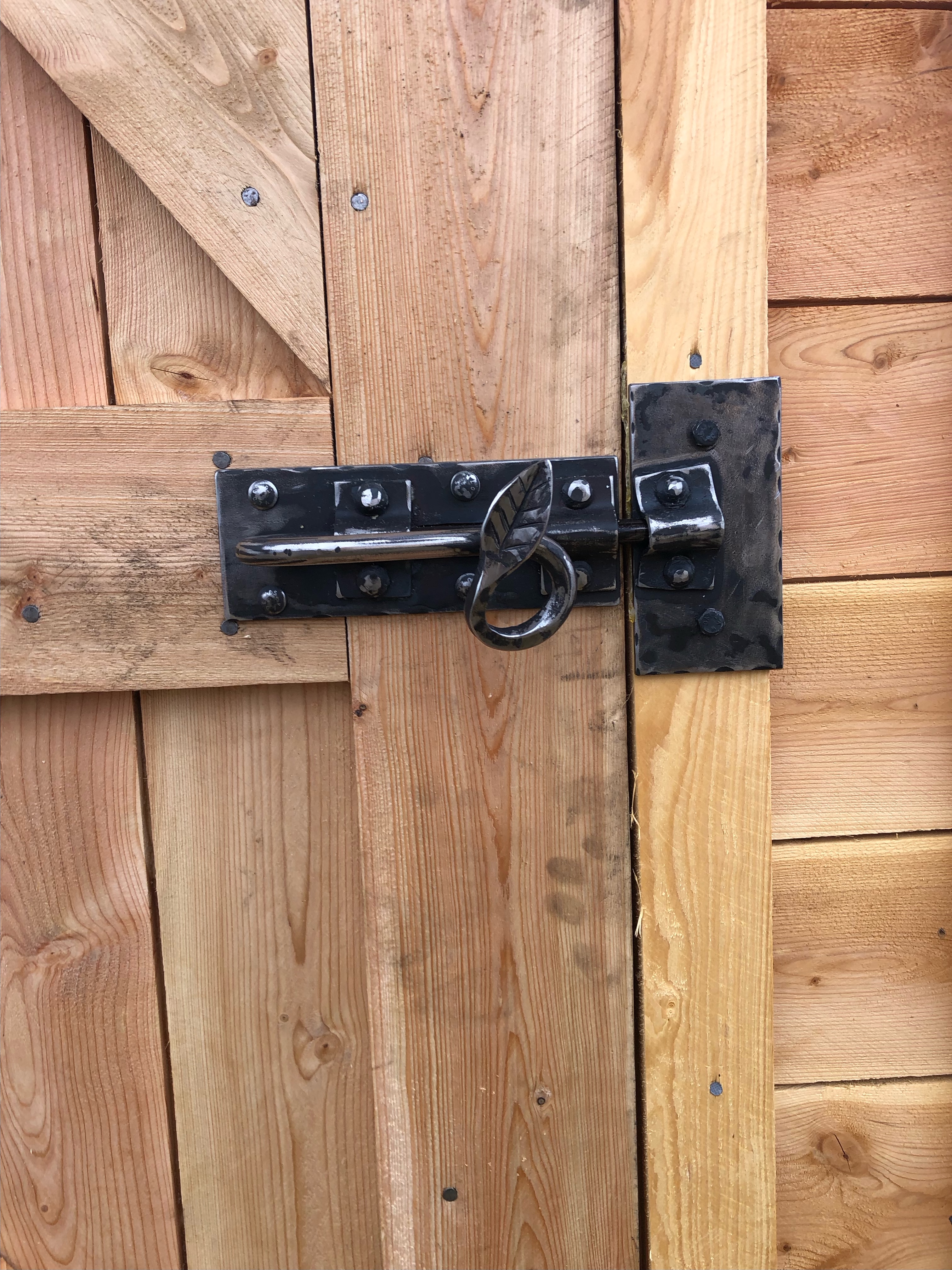 Bart has been busy in the shop this winter – pursuing leather work, wood work and metal work. He built a forge last fall and has been trying his hand at making hinges, latches, and brackets. Even our new outhouse by the hayfields is adorned with quality, home-made metalwork. I am lucky to have such a handy man around!